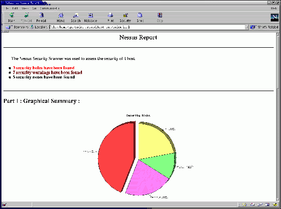Nessus is amazingly complete and effective. In fact it is awesome!! It will identify services on your system and try to exploit them. If a vulnerability is found it will make recommendations about upgrades, configuration changes and where to find patches. It will also explain any causes for concern in detail and explain why your system is vulnerable. And that's not all! It can output reports in various formats including HTML with pie charts and bar charts!! The HTML reports will have hyperlinks to the security reports, upgrades and patches. (I'm impressed) It can scan Unix, Linux and Windows systems for vulnerabilities.
